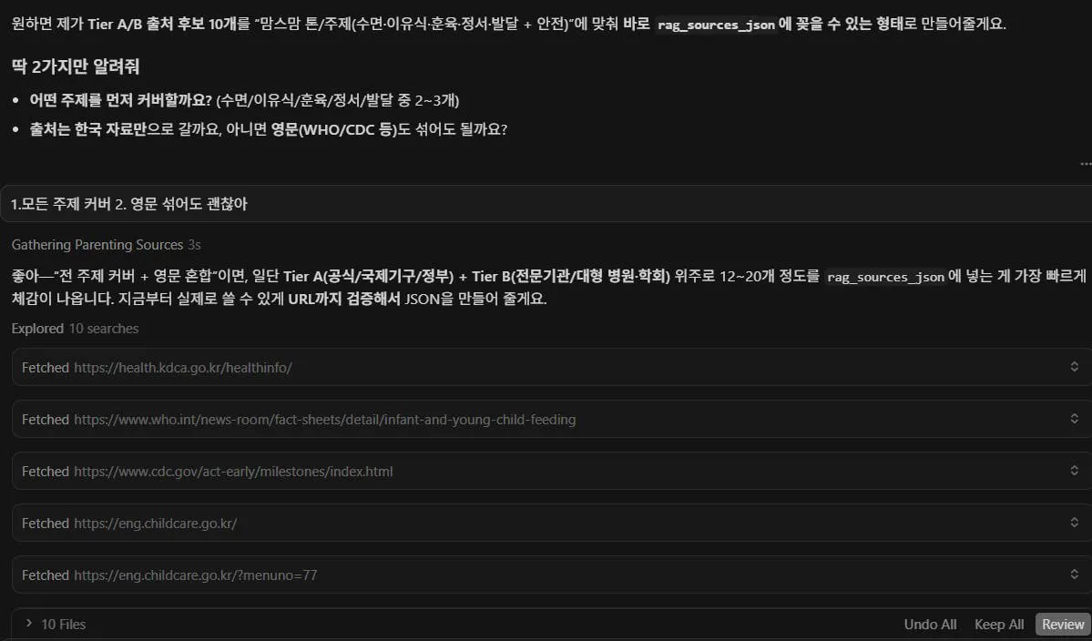 출처(지식원) 전략: 검증 웹자료 + UGC