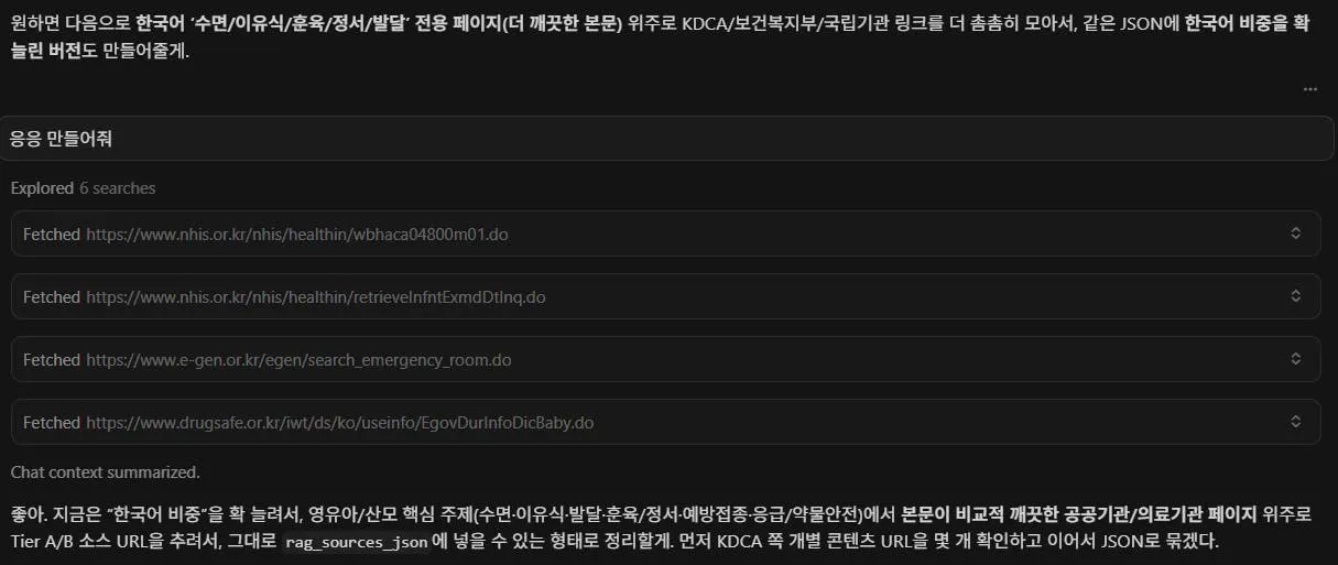 하단 출처 요약(1–3줄): 나머지 출처를 대화체로 묶어 제시