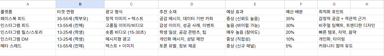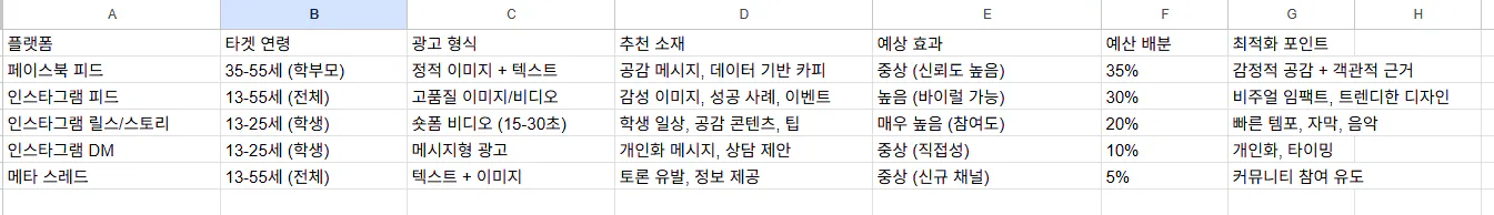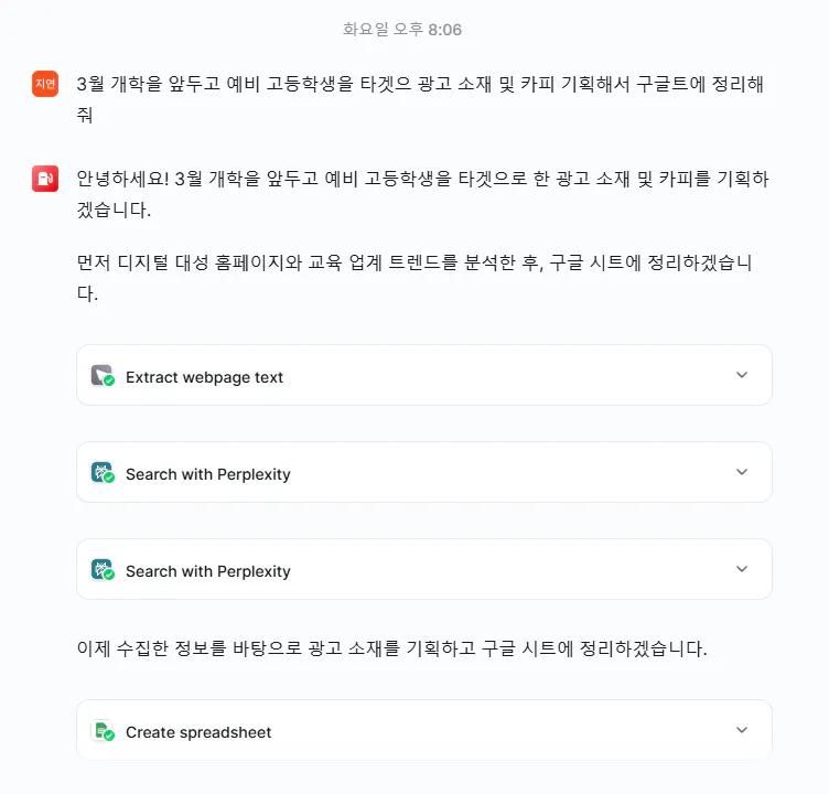 저는 에이전트를 만들고, 곧 있을 3월 개학을 앞두고 예비 고등학생을 타겟으로 광고 카피를 기획해달라고 이야기했습니다!
