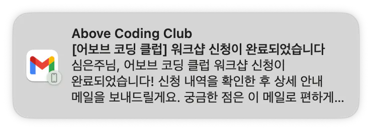 subject: '[어보브 코딩 클럽] 워크샵 신청이 완료되었습니다',