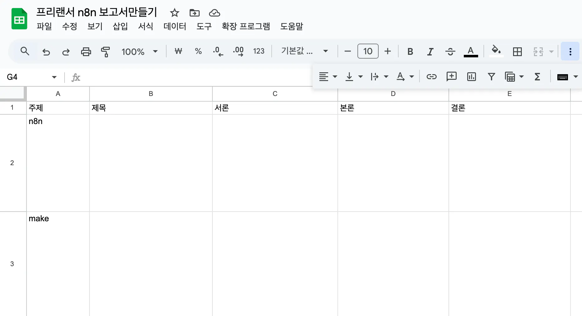 GPT 에게 해당 시트의 [주제] 에 해당하는 컬럼에 있는 데이터로 보고서를 써달라고 했습니다.
