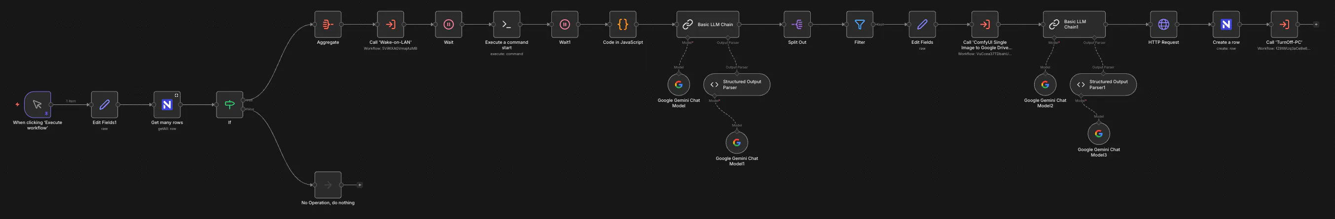 1회차에서는 WOL + VPN + SSH 원격 제어 환경과 ComfyUI 기본 연동을 완료했습니다. 이번 2회차에서는 실제 운영 가능한 완전 자동화 파이프라인을 구축했습니다.