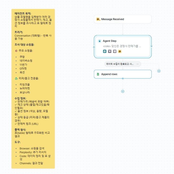 • Agent Step (ChatGPT가 경쟁사 판매가 수집 및 정리)