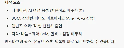 카드뉴스가 만들어진 후 마누스가 숏폼 영상도 대본을 만들어주었음