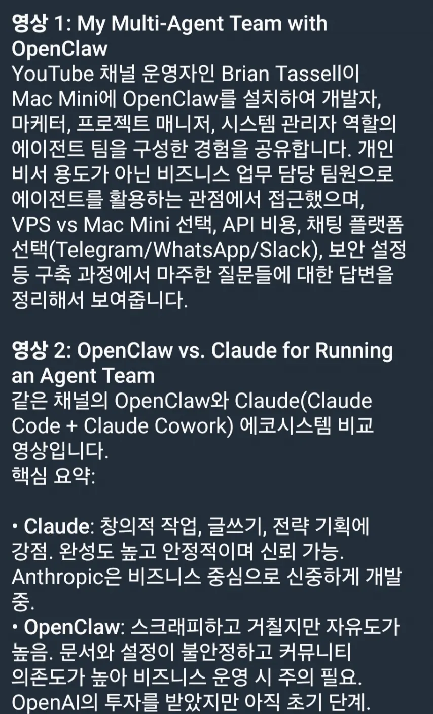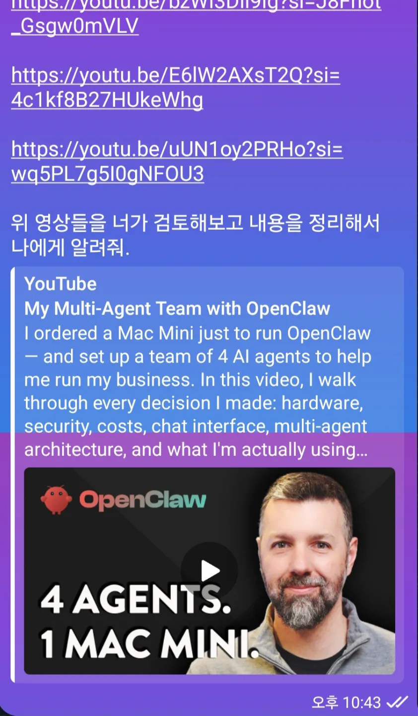 먼저 처음에는 아래 링크(유튜브)를 Openclaw에게 전달하여 숙지하도록 했습니다.