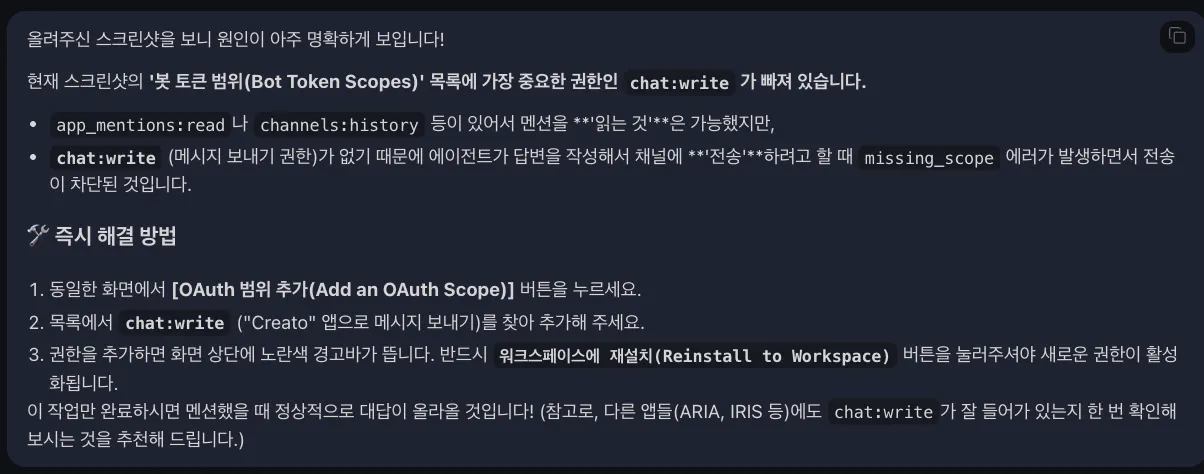 이 경우에는 에이전트의 페르소나를 검토 혹은... 권한 검토를 해야합니다.