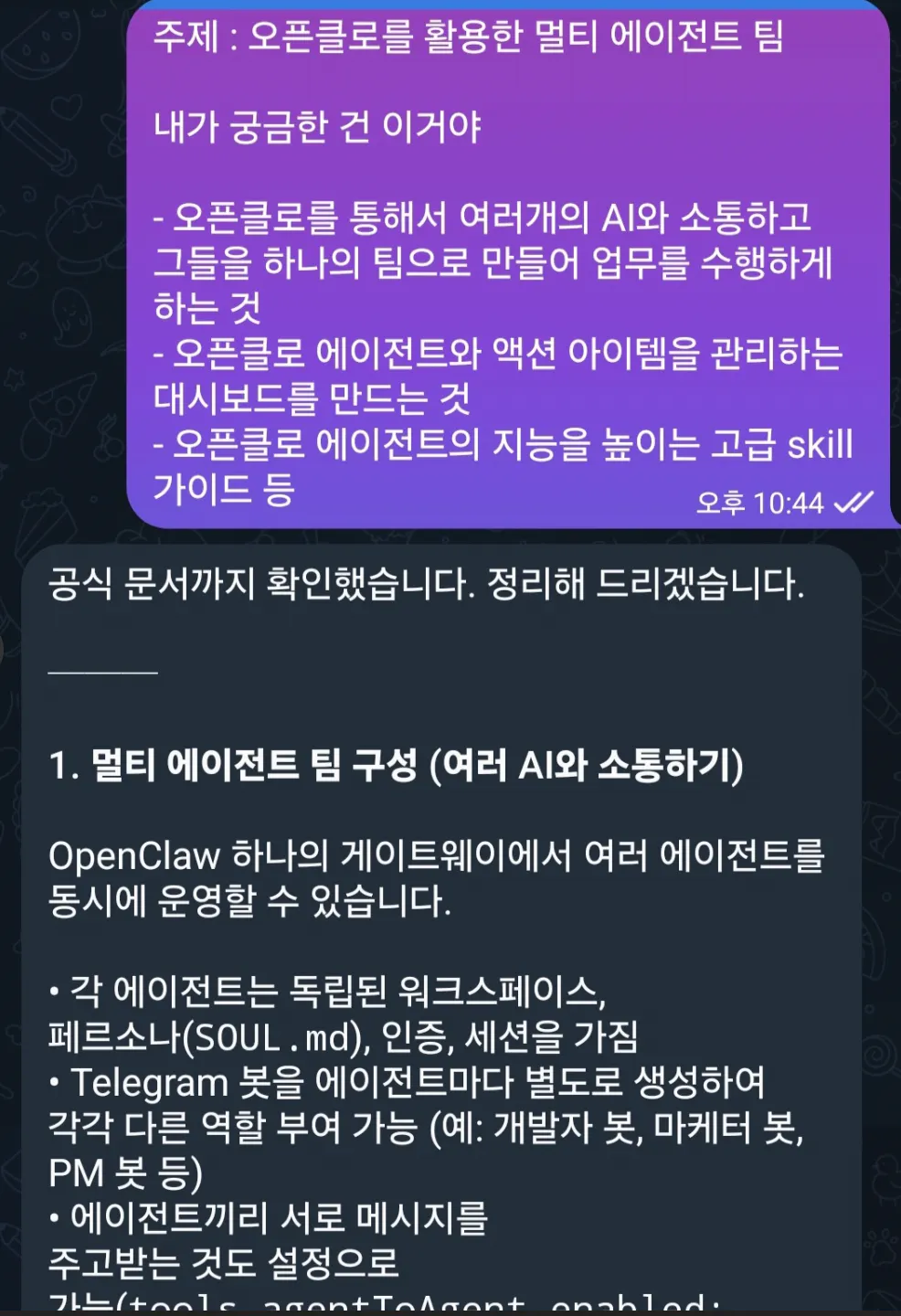 1. 과정 중에 아직 각 Agent들이 답을 안하거나 작동을 잘 하지 않는 경우가 있습니다.