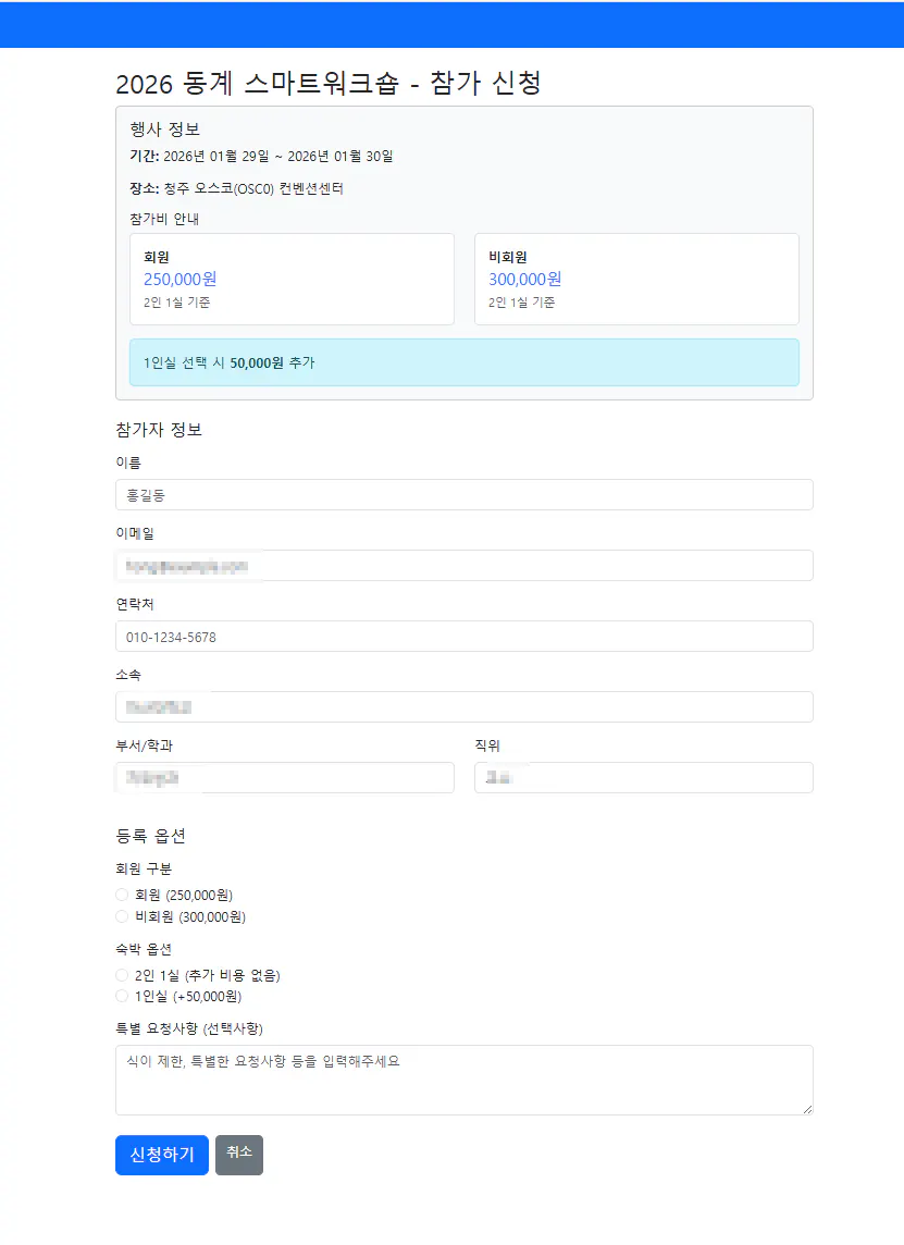 마침 Rails8을 배우는 스터디에 참여하게 되어, 이번 기회에 직접 보안성이 높은 행사 등록 시스템 웹앱을 만들기로 결심했습니다.