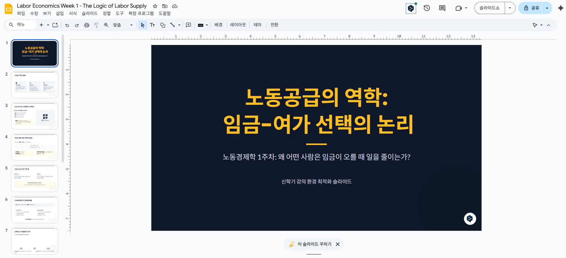 1️⃣ 노동공급 파트 1주차(첫 수업) 상세 설계