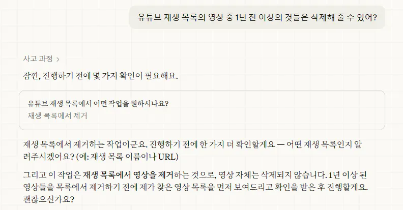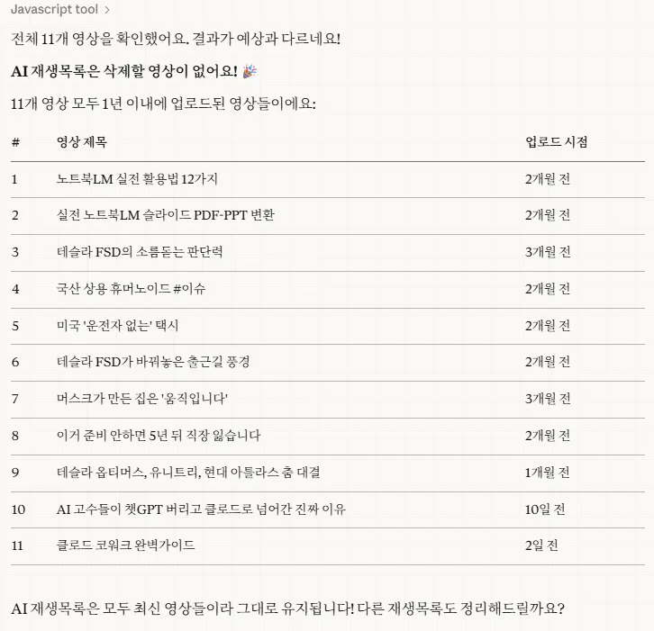 claude Cowork으로 내 컴퓨터 파일을 정리했던 게 기억나 유튜브 재생목록 지우기도 가능하겠다싶어 시도해 성공했습니다.