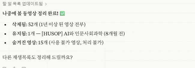 7. 이후 다른 재생 목록도 정리하도록 시켰습니다.