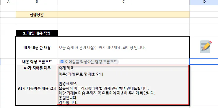 * C7(구글 문서 연동 프롬프트)을 사용하여 메일을 작성합니다.