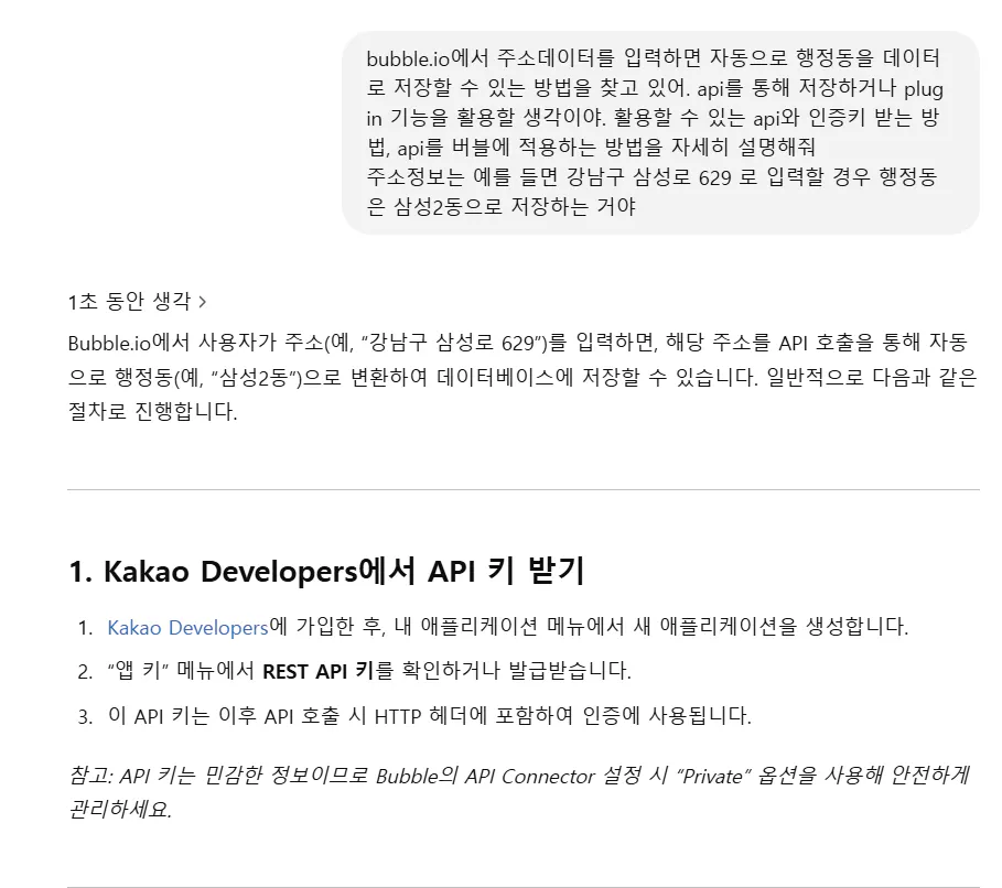 api 연동에 대해서 배웠고, 무엇보다 어마어마한 팁 : gpts bubble에 질문해서 계속 답을 찾아내고 오류를 수정하는 것입니다.