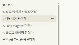 CTA4단계에 맞춰 진행함. 클로드 즐겨찾기에 번호를 주고 사용함.(사용하다 순서가 어떤것이 먼저인지 헷갈릴 것 같았음)