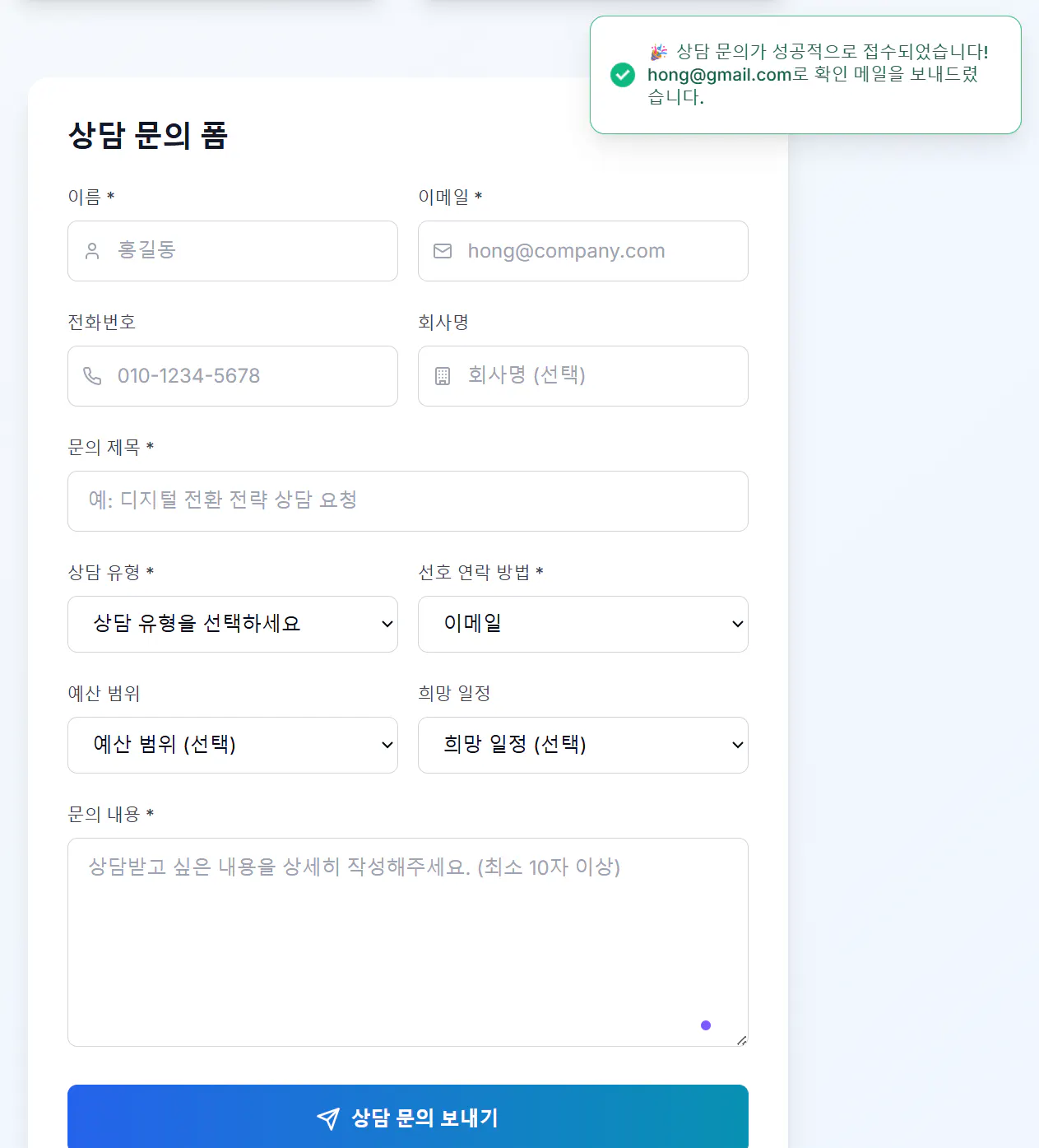 상담 문의 테이블