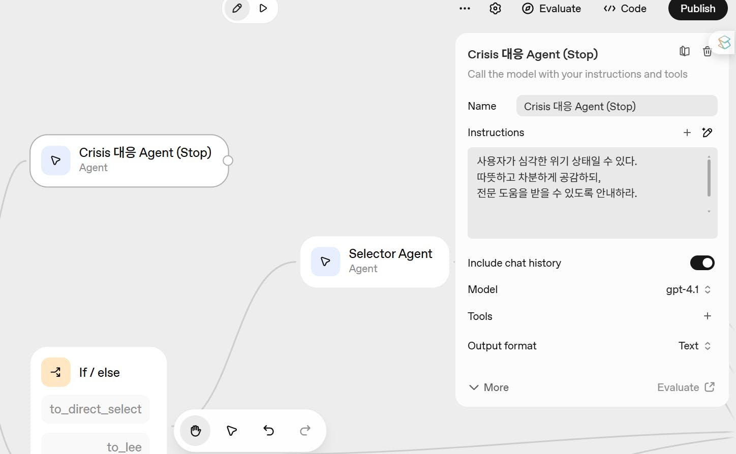 Crisis 대응 agent가 응대하도록 했습니다.