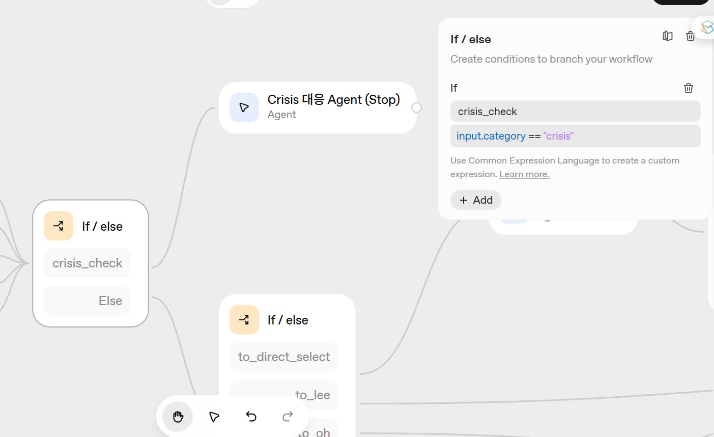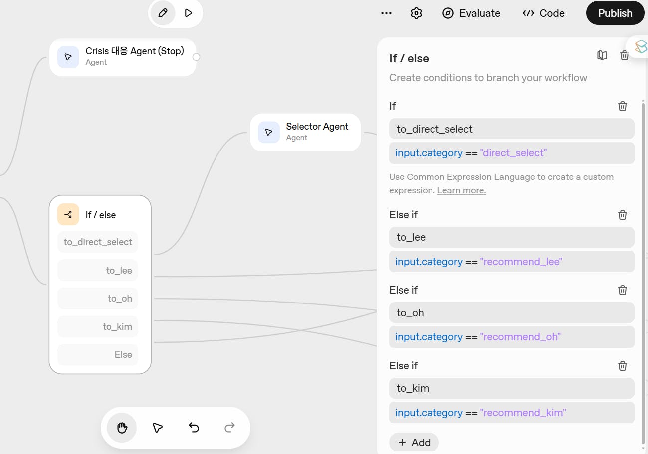 input: 바로 앞 노드(Classify)의 출력 전체input.category: Classify가 분류한 카테고리 문자열"crisis": 네가 Category 이름으로 만든 라벨