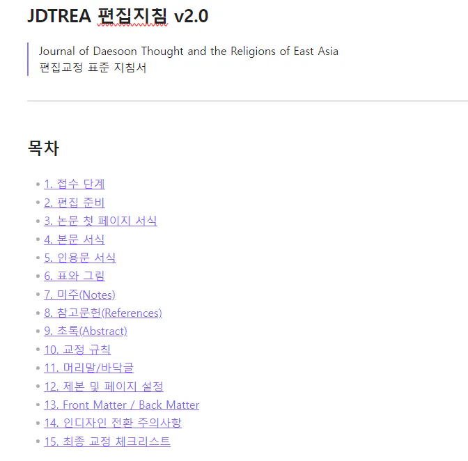 앞으로의 계획은 같은 편집지침을 이용해서 처음 들어오는 원고를
