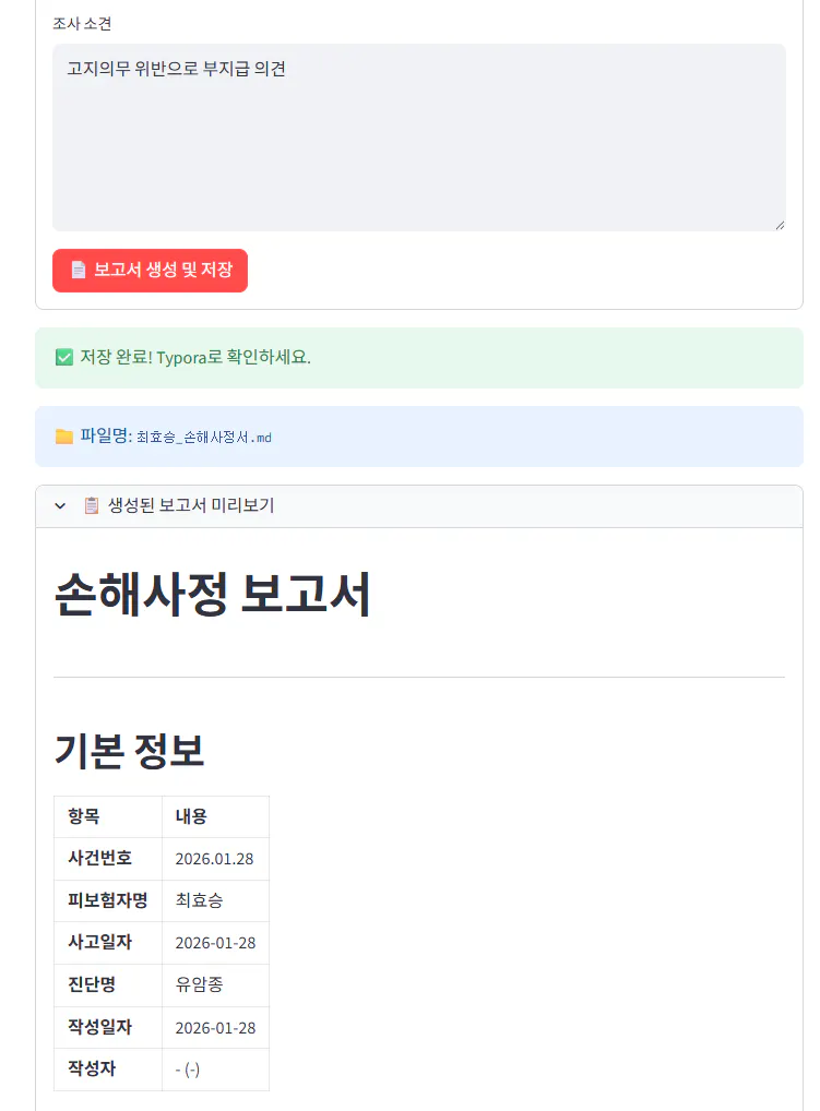 • 반복 업무 자동화: 매번 한글/워드를 켜서 복사-붙여넣기 하던 '손해사정 보고서' 작성을 요즘엔 구글 gems로 작성 하고 있는데 좀 더 커스터마이징 해보고 싶었습니다.