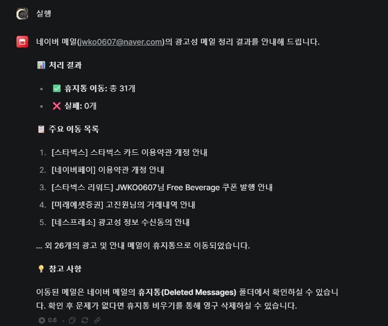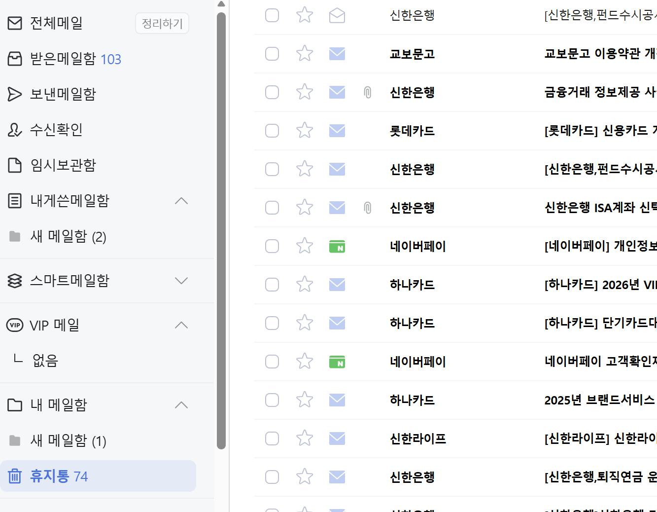 광고성 삭제 메일이 휴지통으로 가지 않고 바로 영구 삭제됨.