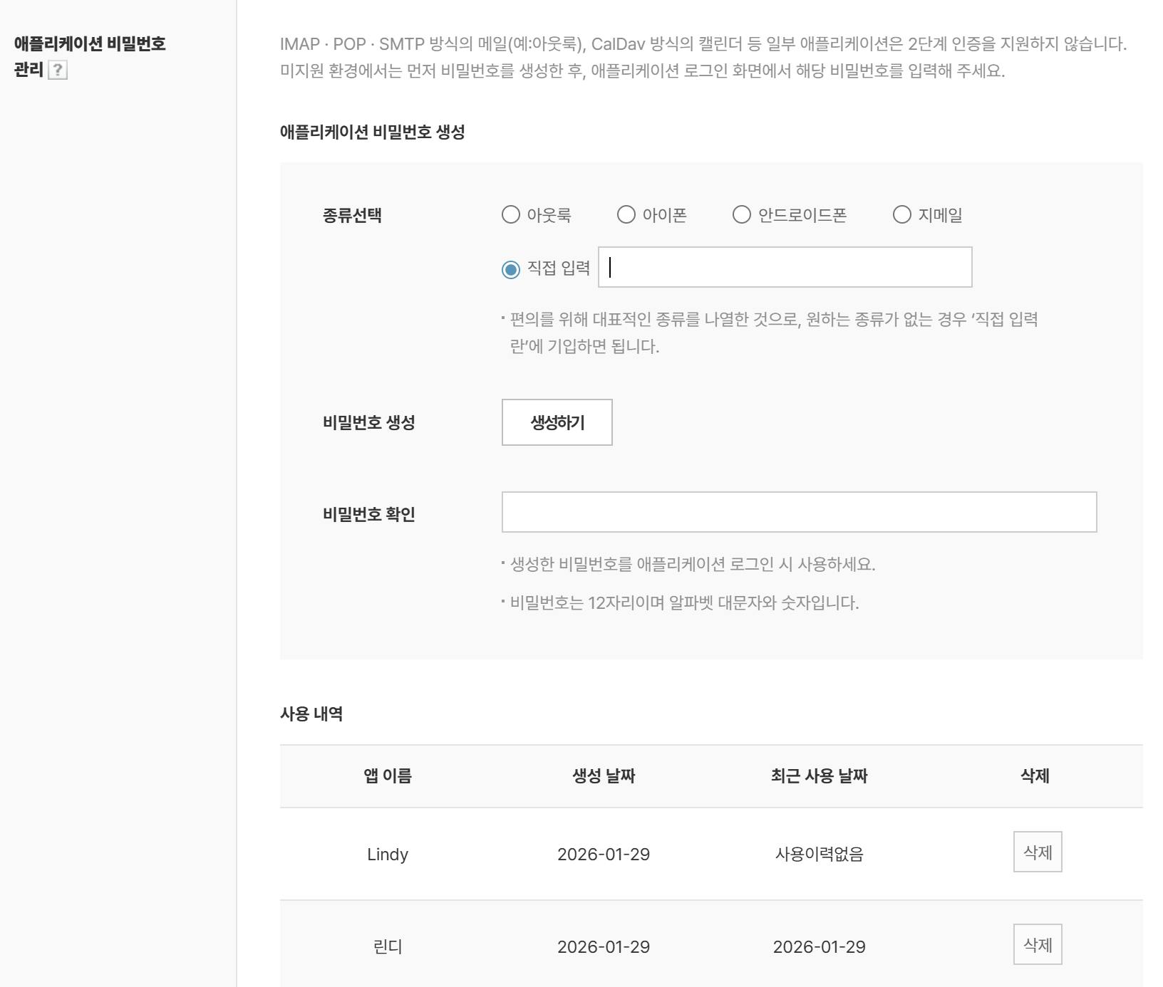 => API인증키를 받았으나, 린디 Agent를 통해 네이버 메일을 삭제할 경우에는 API인증키가 필요하지 않음