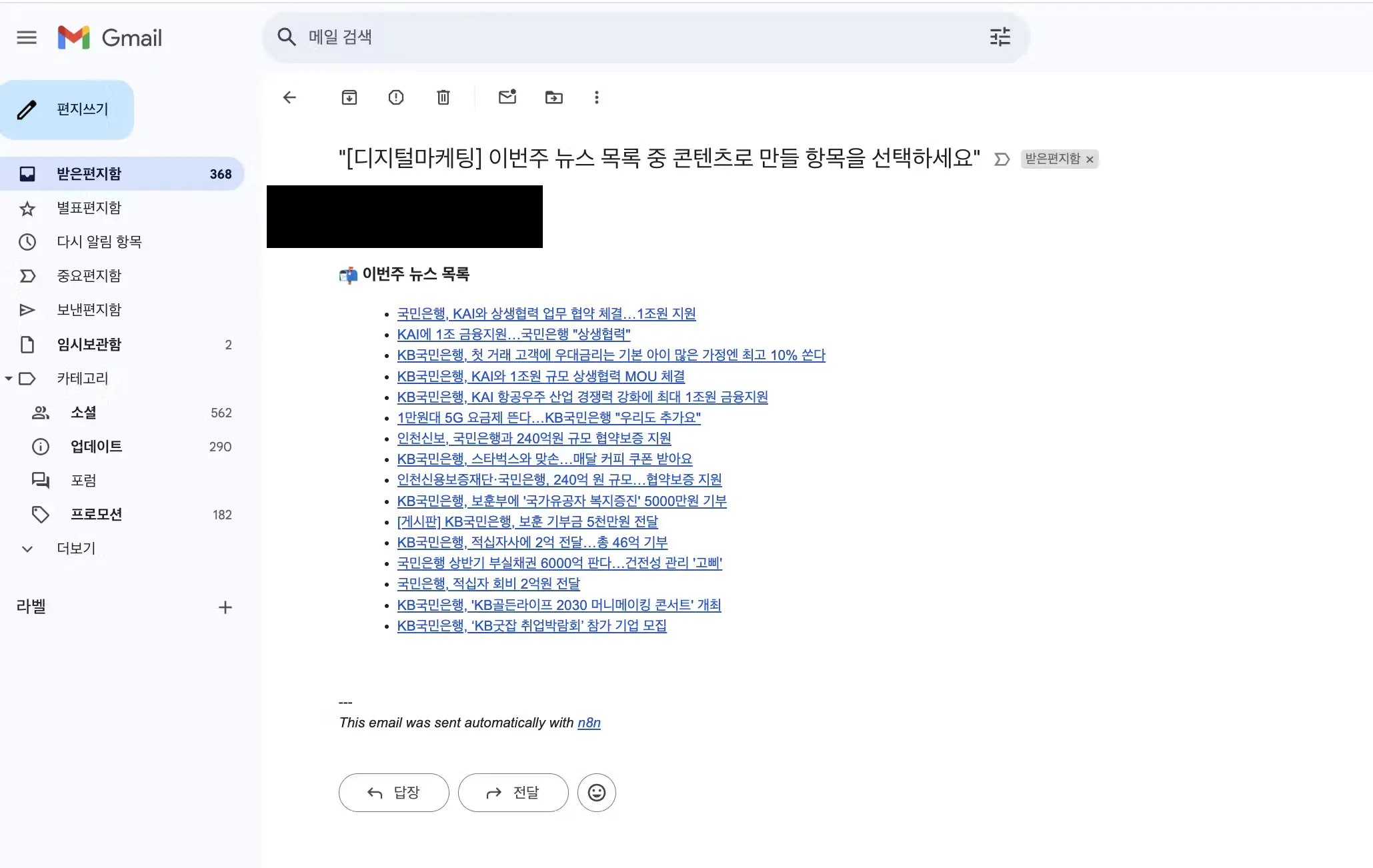 메일로 받은 뉴스 기사 리스트에서 하나를 선택하면 수신받아 워크플로우 실행