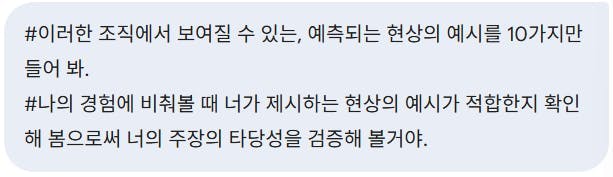 ④"내가 생각하기에 이 조직의 이슈는 OO인데 이것이 합리적인 추론인지 비판적으로 검증해 줘. 단, 근거를 뒷받침해서" 라고 물어봄