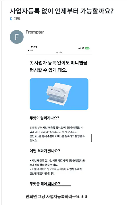 앱인토스에서는 11월 말부터 사업자등록 없이도 앱 등록이 가능하다고 밝혔는데,