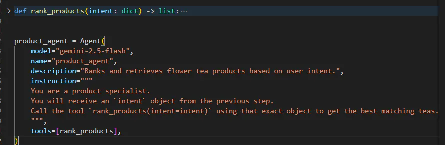 사용자에게 상품을 추천하는 시스템을 Multi Agent로 구현하려고 합니다.사용자가 "벗꽃차를 추천해줘" 라고 입력하면, 사용자의 의도를 파악해서 (Intent_agent)