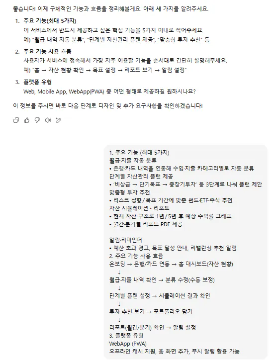 스터디에서 제공해주신 UX/UI Builder를 키고 "MVP를 만들고 싶어"로 시작했습니다.