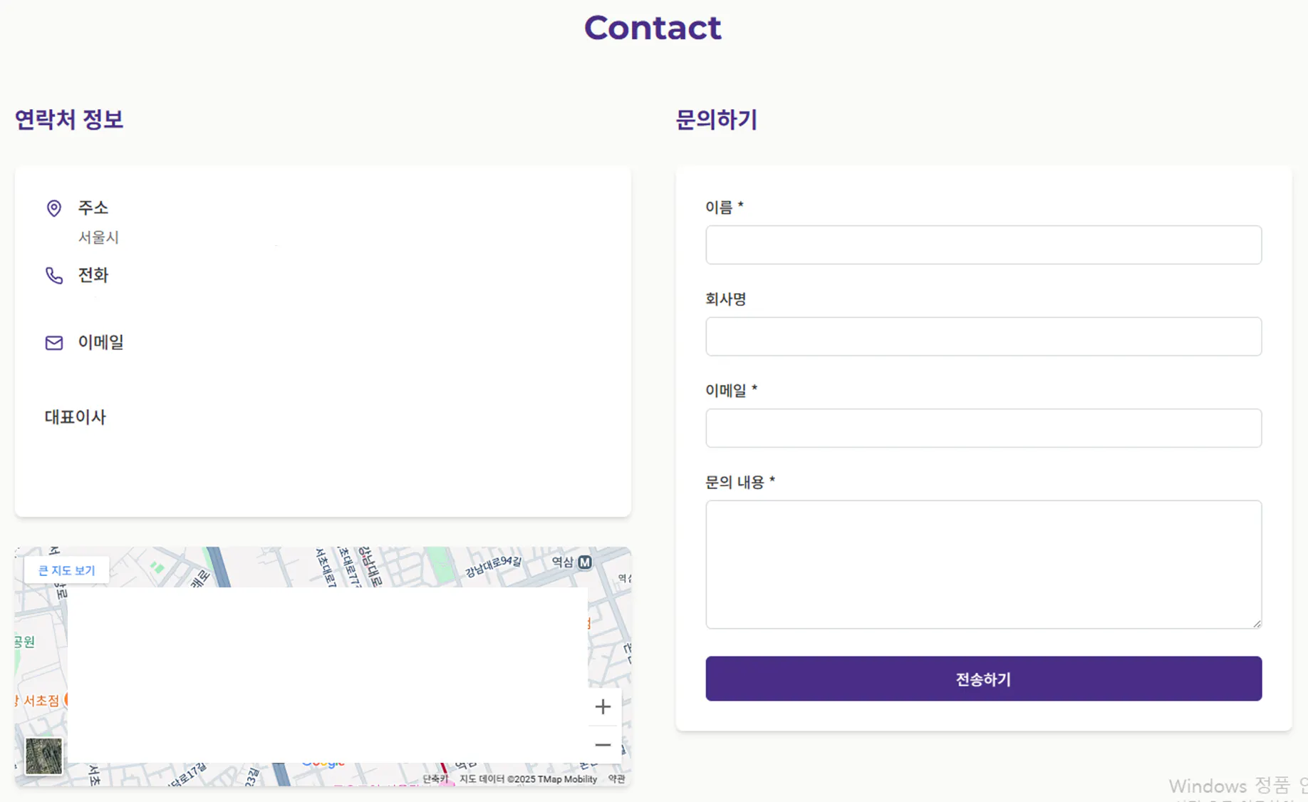 • 예: Home, About, Services, Contact 등의 구조로 구성