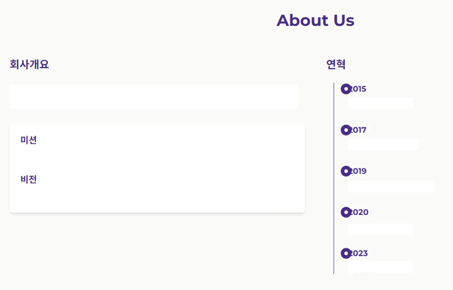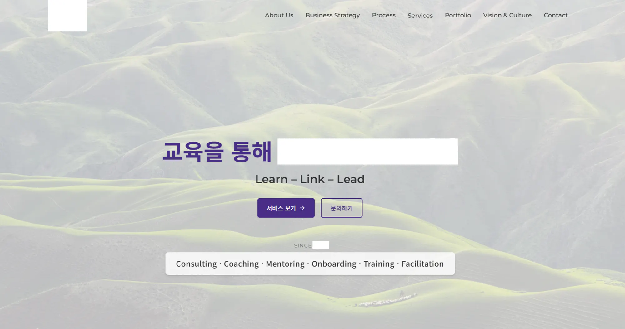 – 우측에 메뉴(Home, About Us, Services, …)