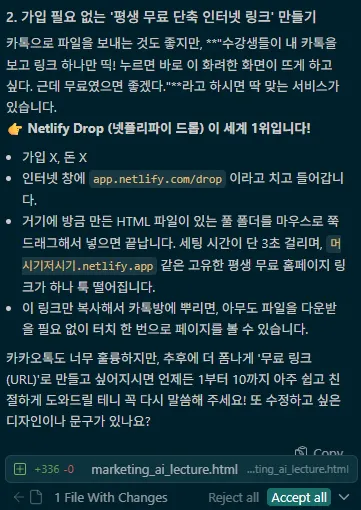 • 교수님이 주신 프롬프트에서 더 연습해보고자 제 사업 내용으로 변경해 보았어요.