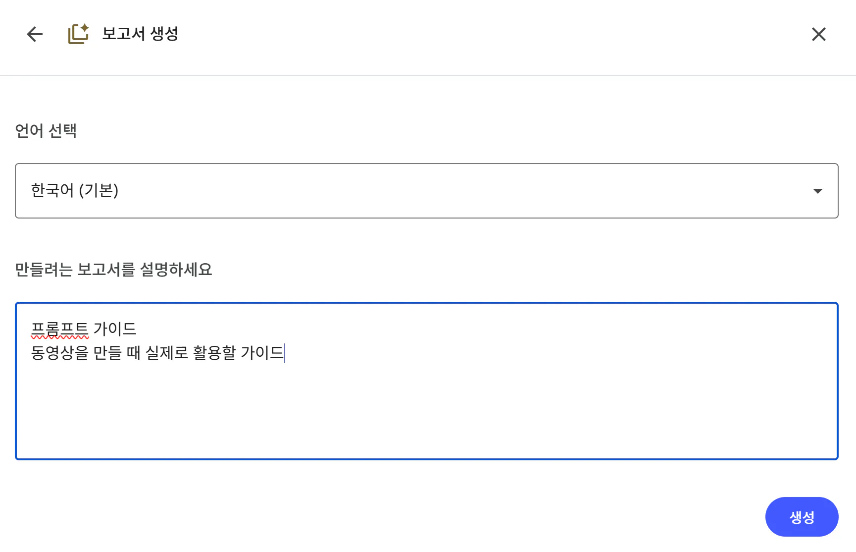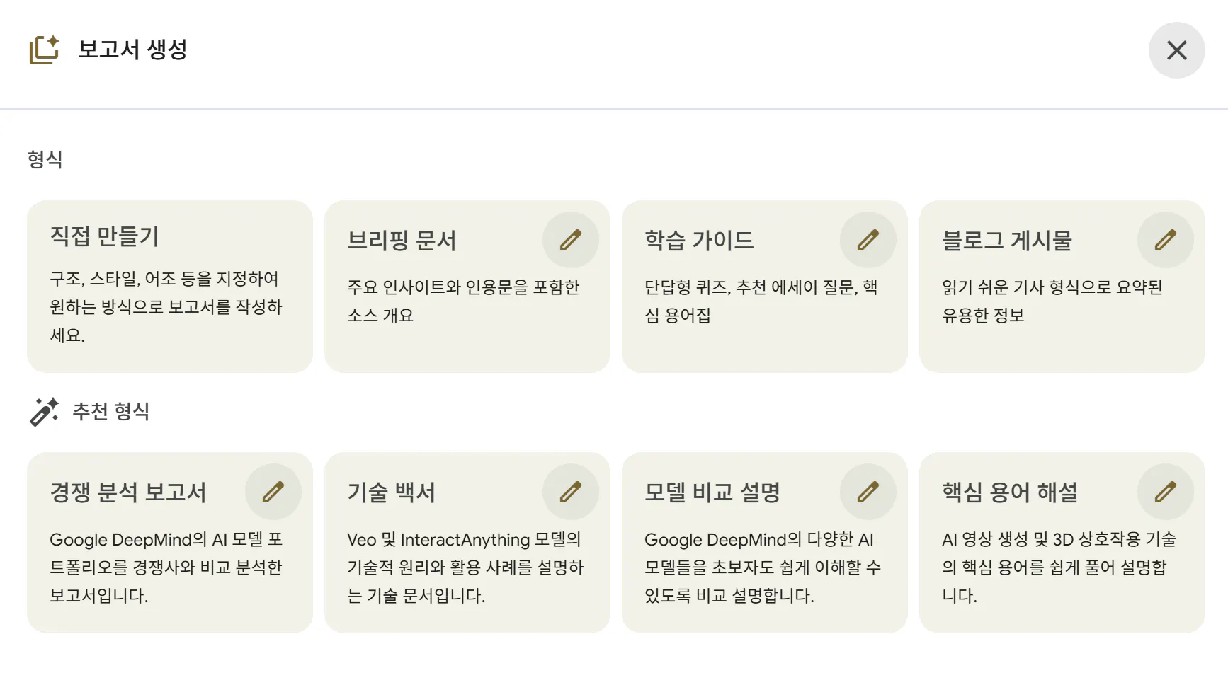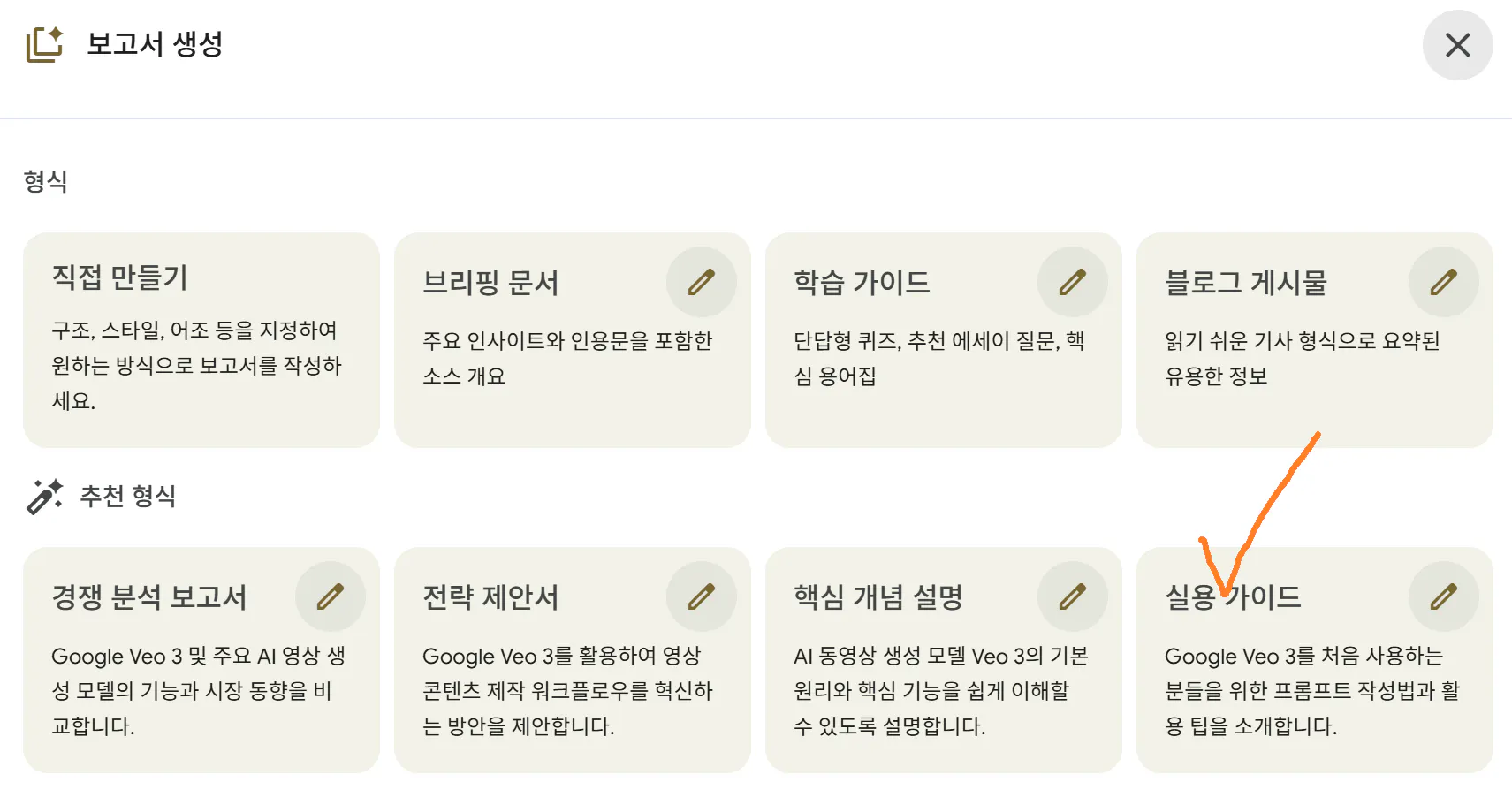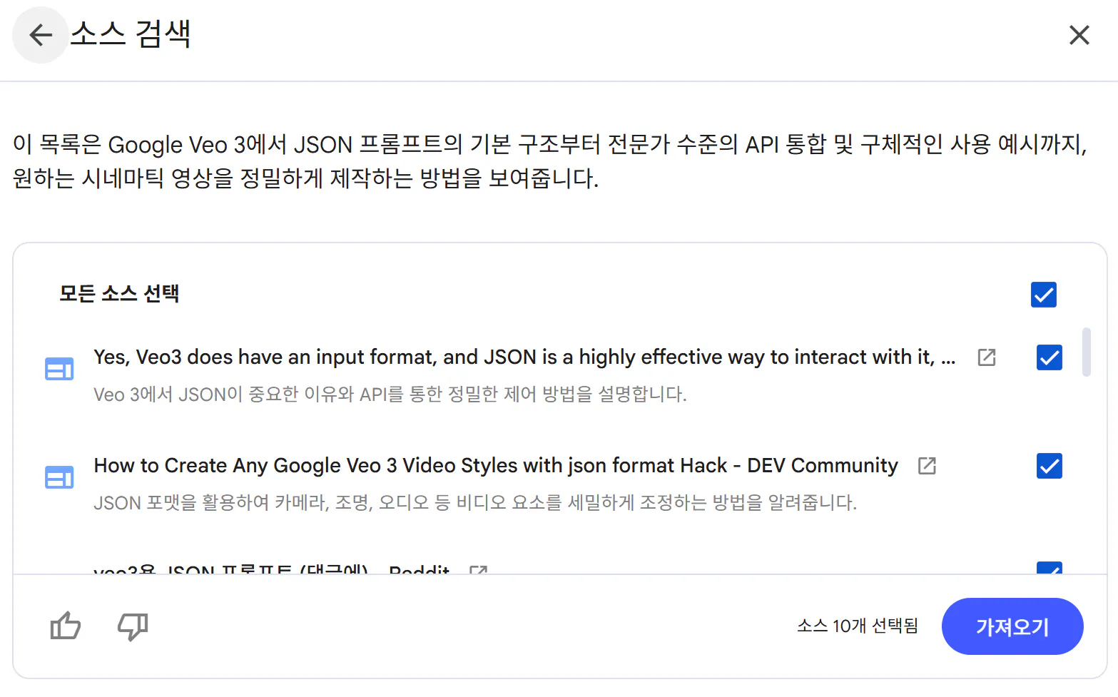 Tip: 보고서를 얻고 해당 가이드라인을 다시 소스화해서 해당 소스를 바탕으로 동영상 생성을 요청하는 작업을 거쳤습니다.