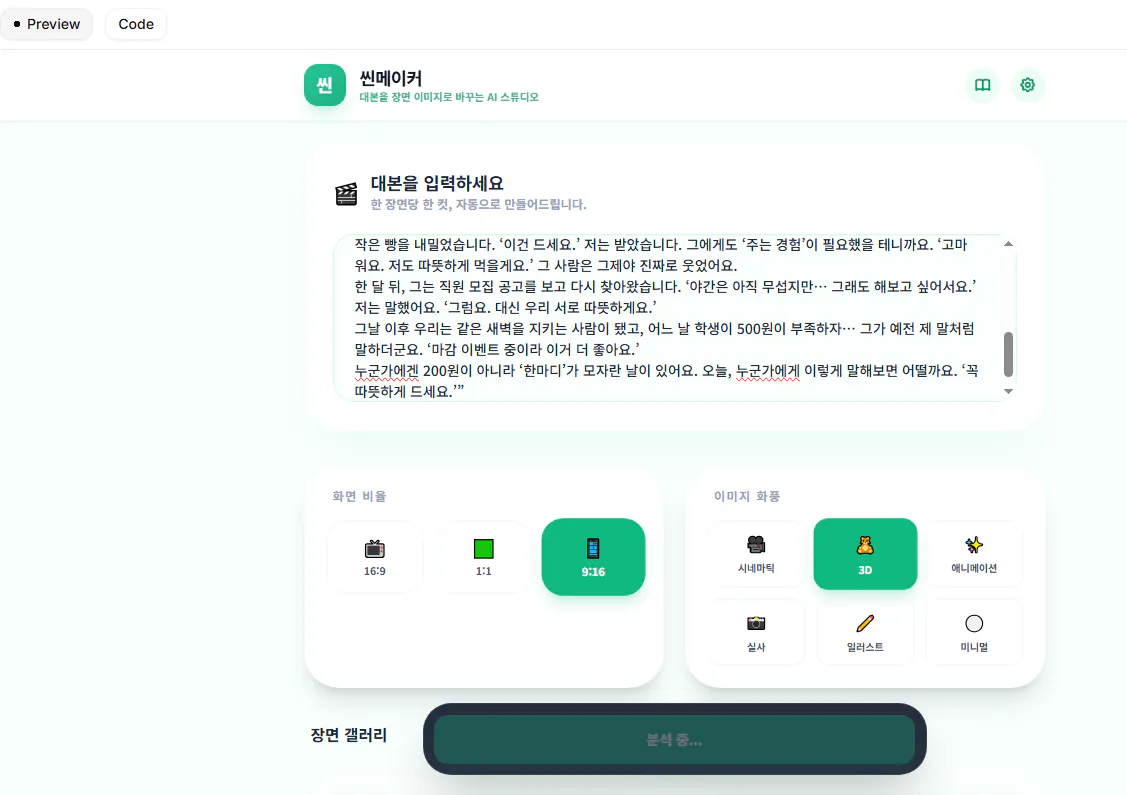 대본을 입력하면 이미지를 만들어주는 앱