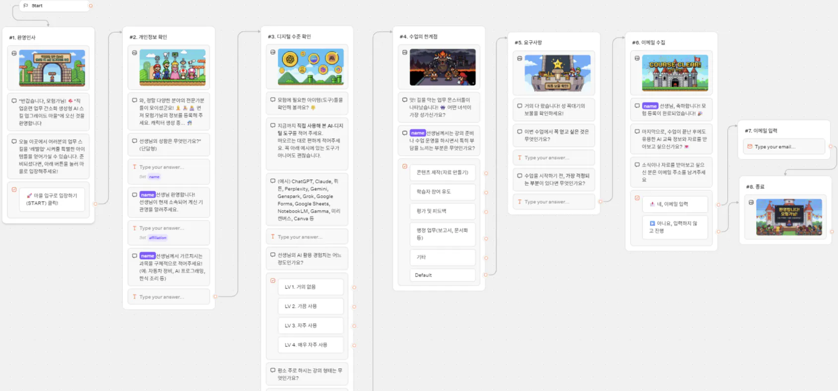 응답에 따라 다음 질문을 연결할 수 있고