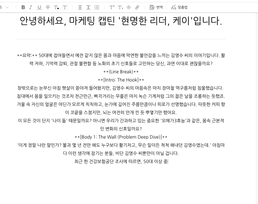마케팅 캡틴에 자동 업로드 기능 구현하여 실행해 봄 -> 위 화면과 같이 자동으로 글을 작성 중