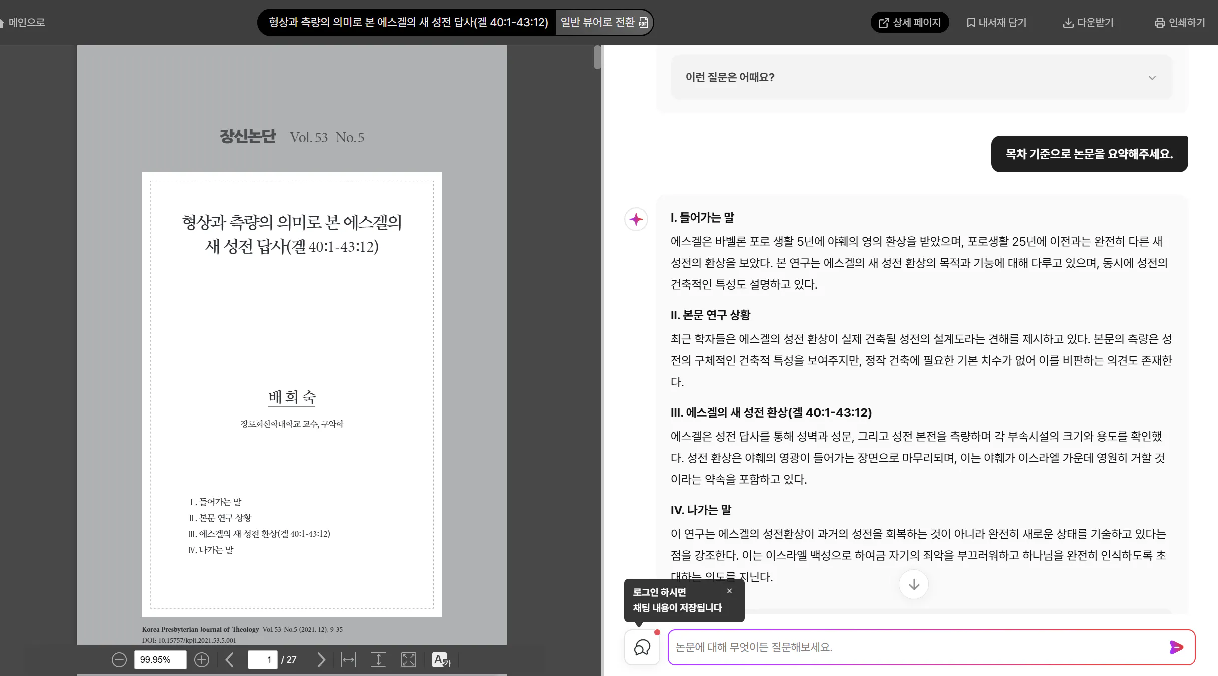 AI 뷰어 기능으로 논문 내용을 대화형 탐색