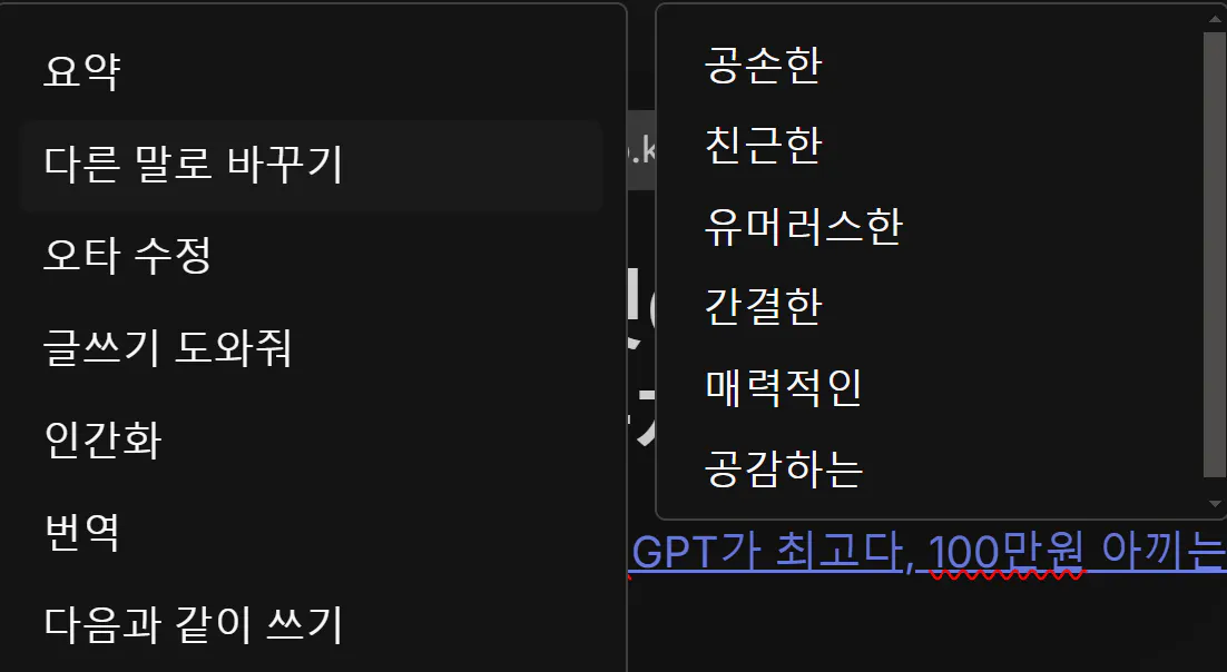 요약, 패러프레이징 기능이 있지만 아직은 미흡