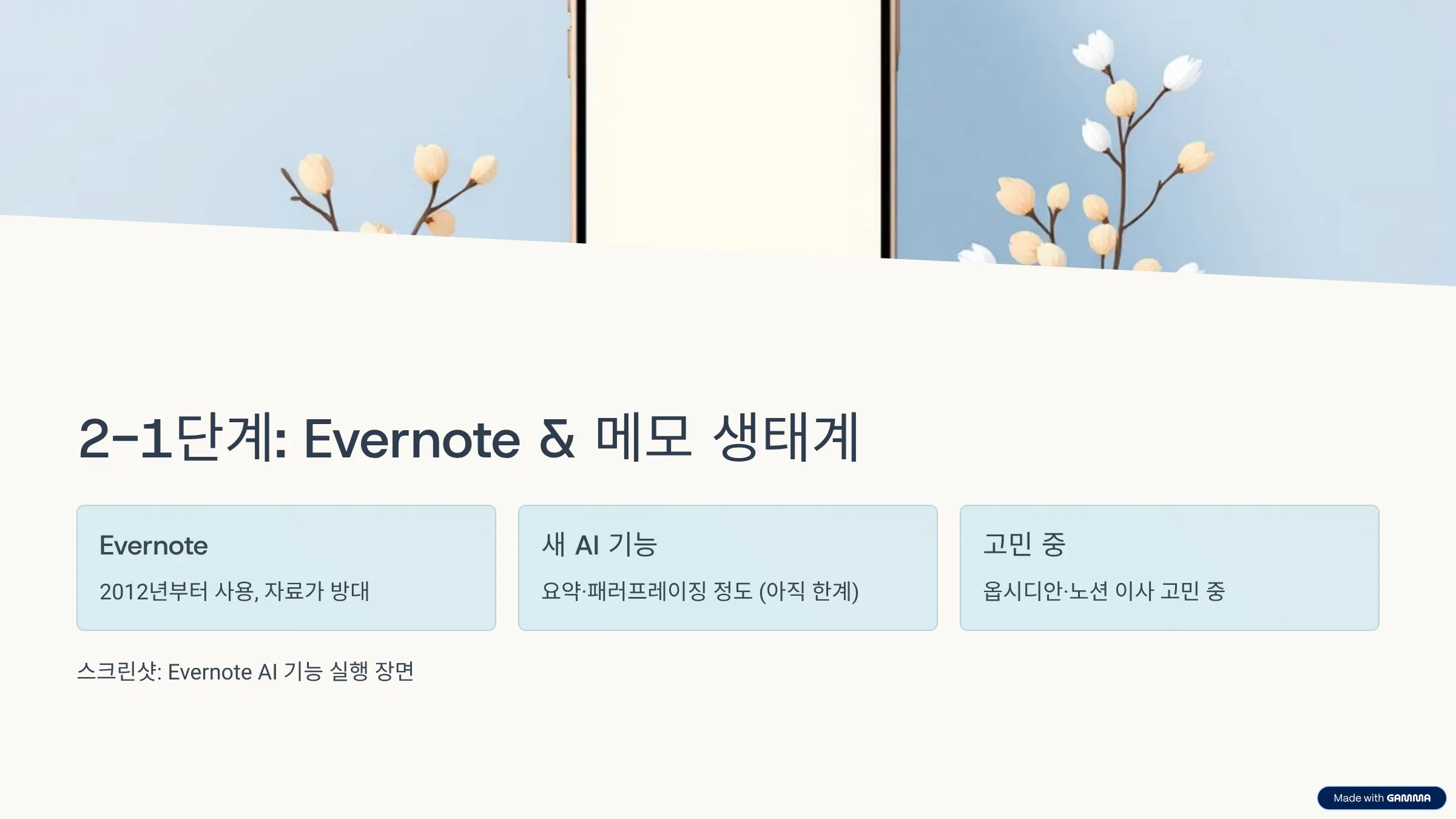오랫동안 써온 에버노트는 익숙하지만, 기능 면에서 한계를 느낌