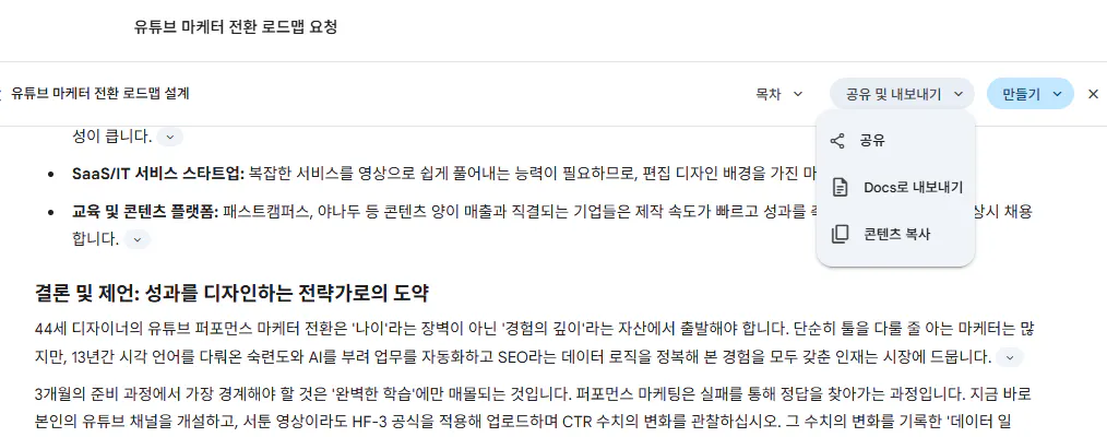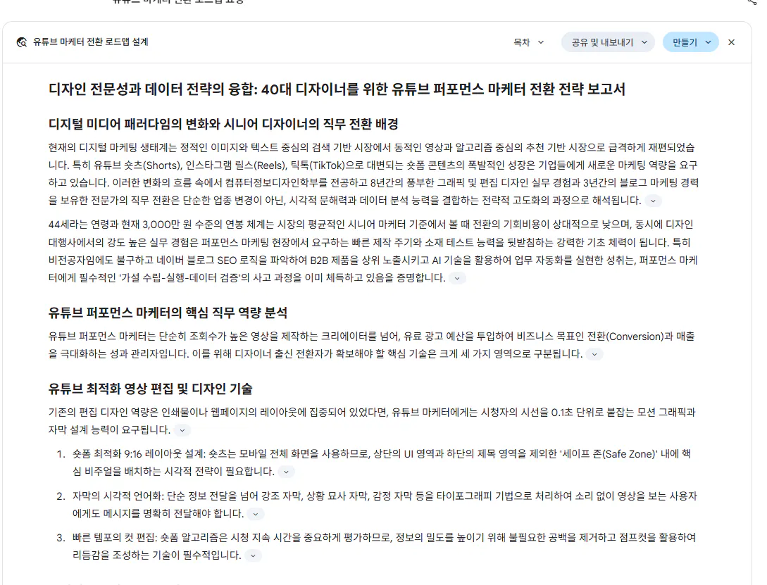이 부분은 딥리서치를 끄고 일반적으로 진행하였습니다.