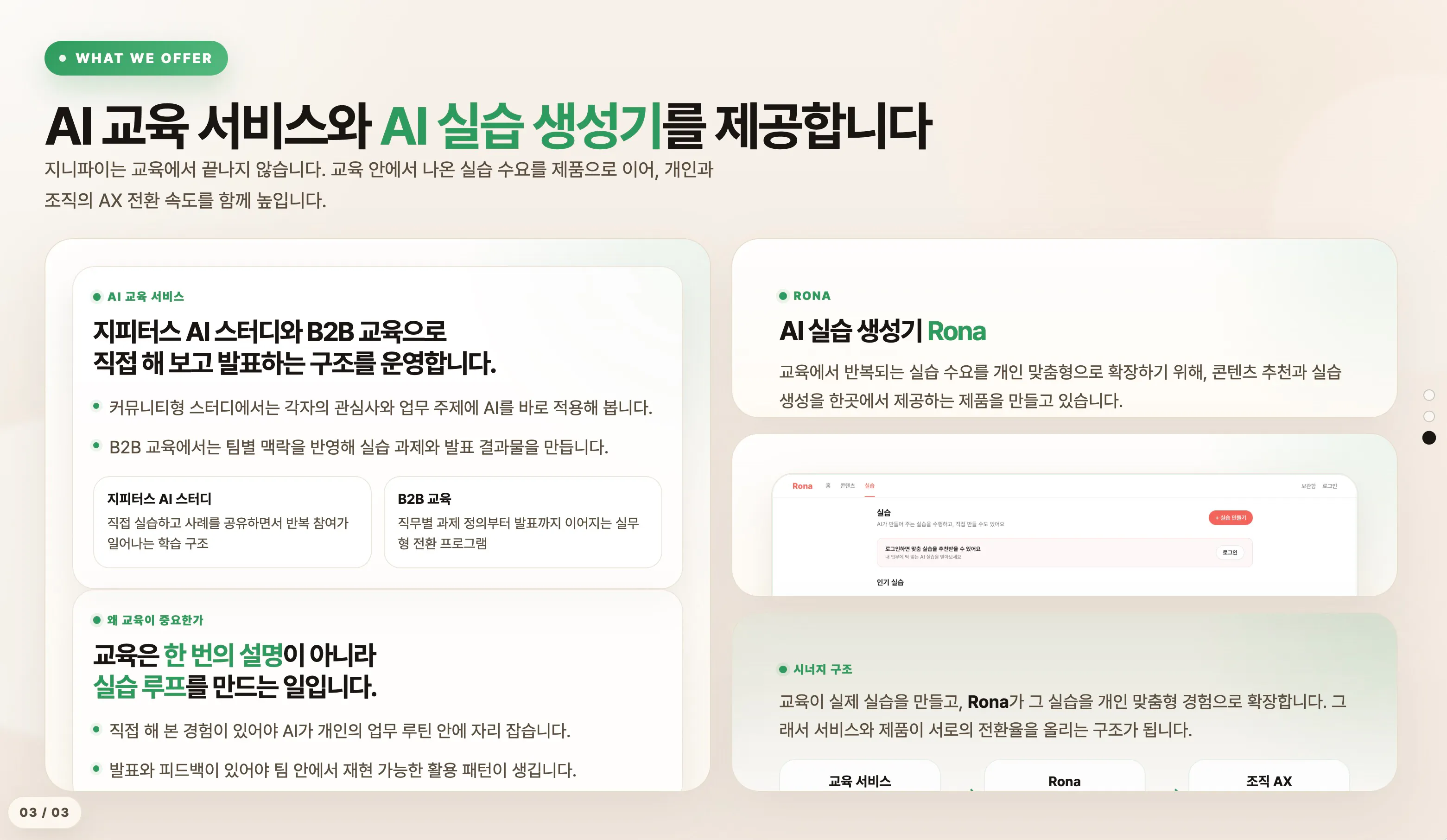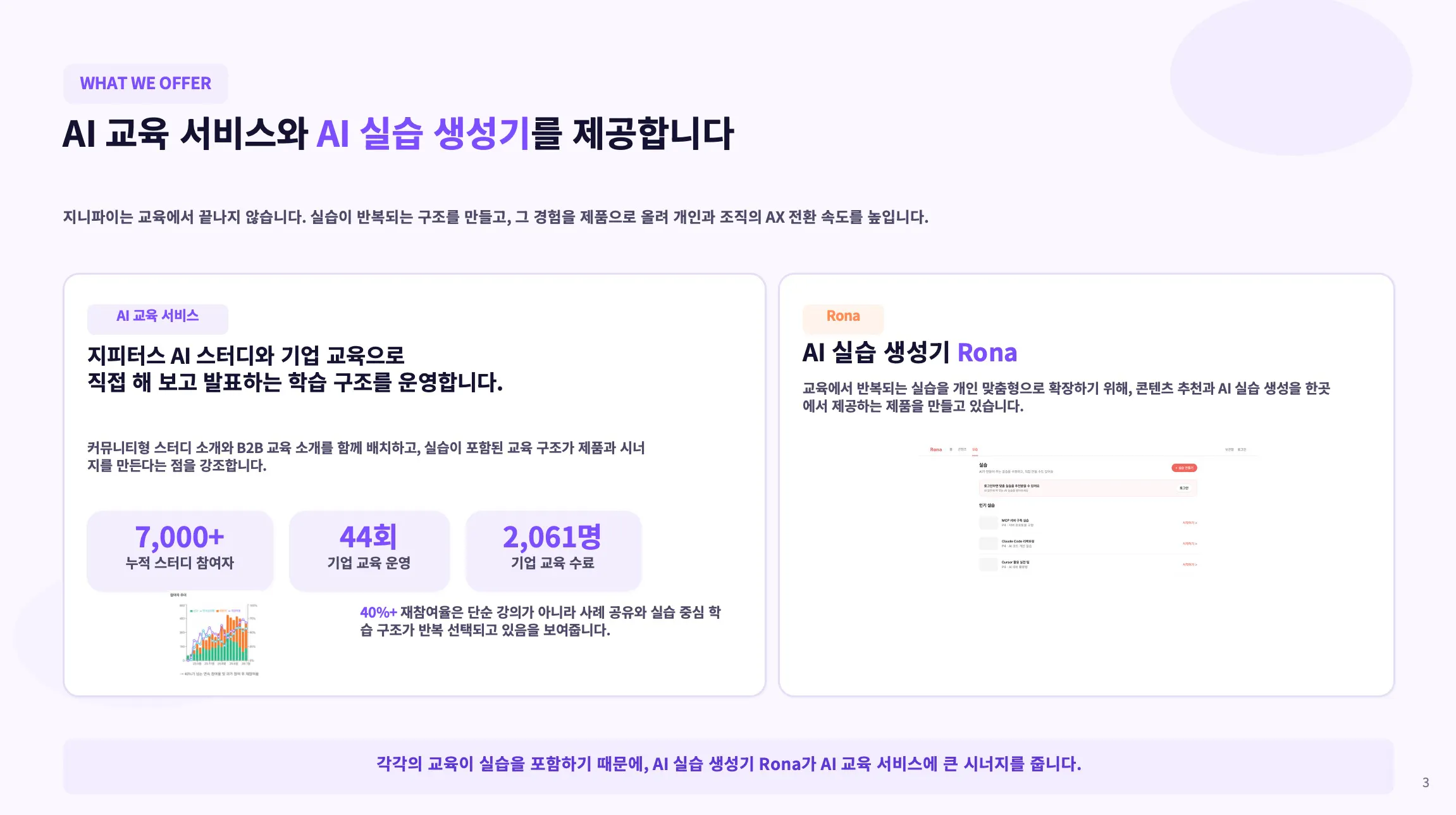 WHAT WE OFFER: AI 교육 서비스 KPI + Rona 기능 소개