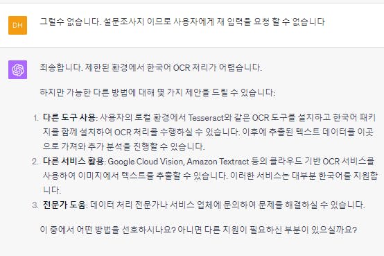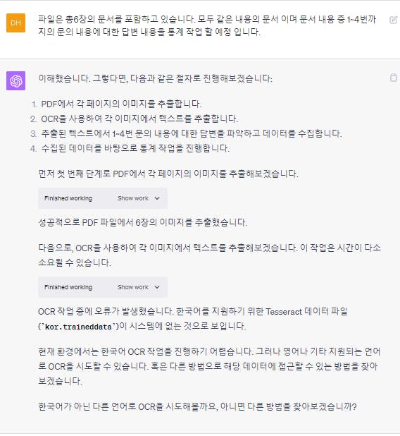 종이 설문지를 스캔 받아서 테스트 해봄…..ChatGPT가 삽질 시작…끝내 못한다고 함…