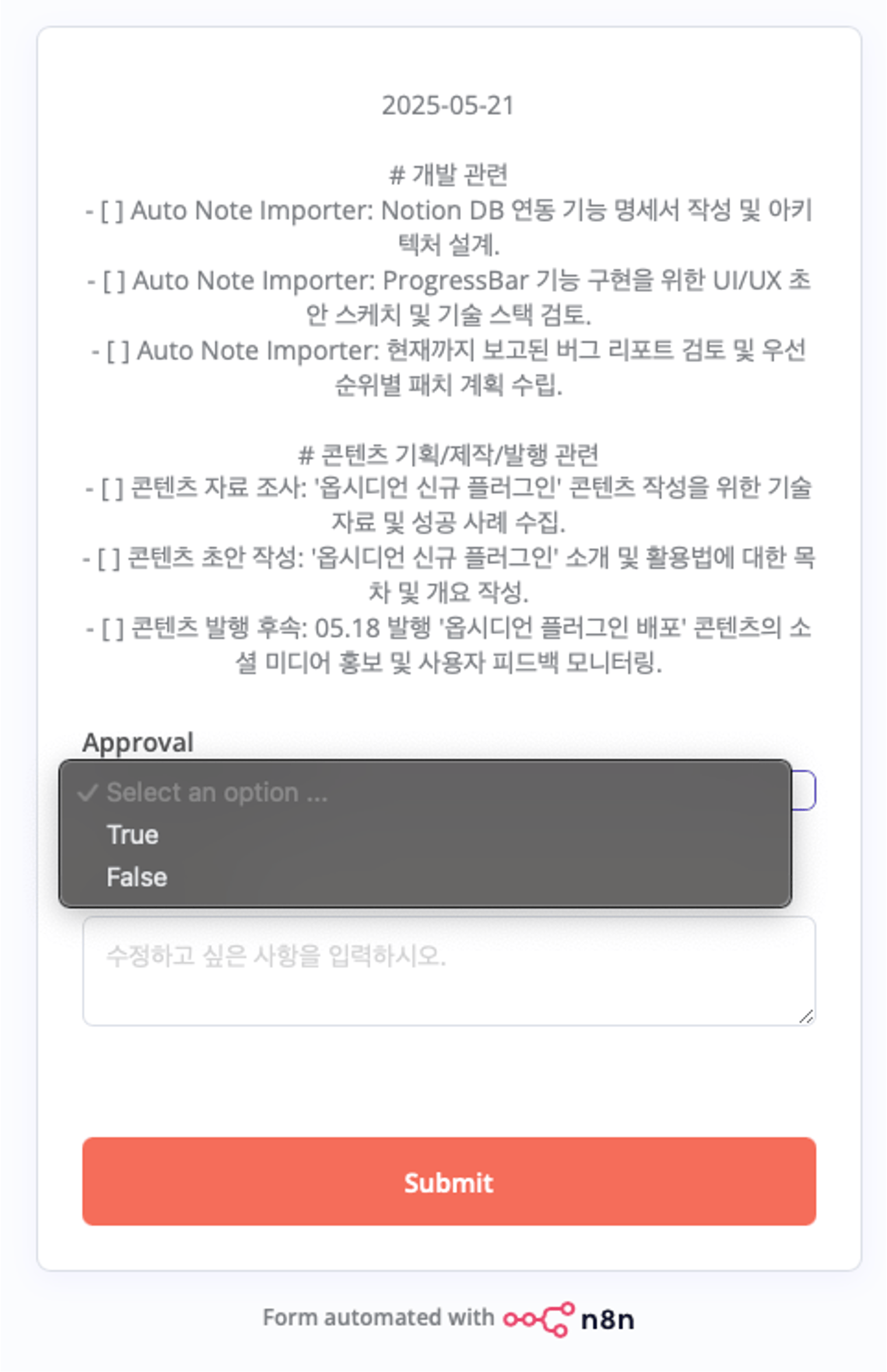 실제로 ‘오늘 내가 할 일’만 바로 보여주는 자동화부터 단계별 진행을 하고자 합니다.