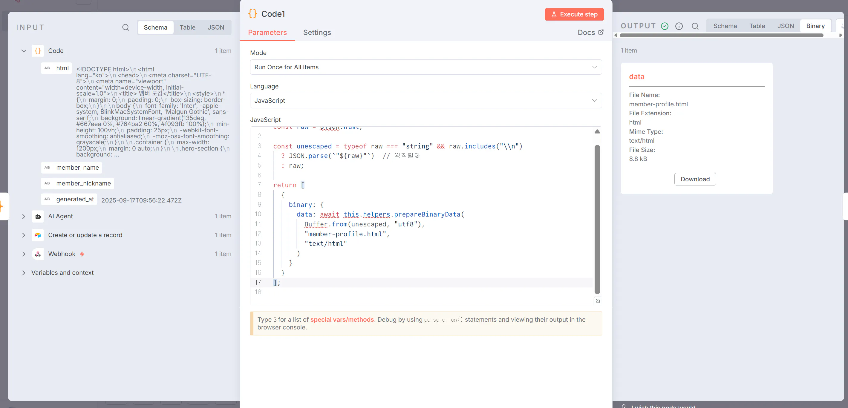 > Code로 HTML 템플릿 생성 > Code로 파일 다운로드
