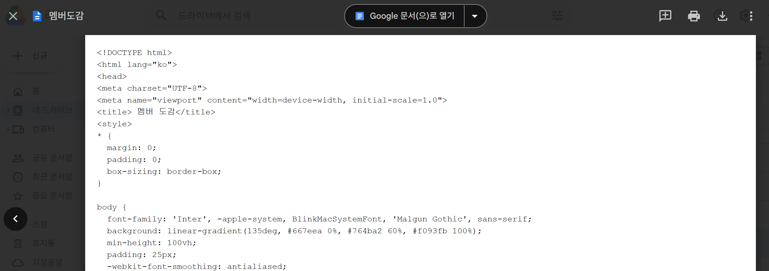 드라이브에서는 html내용 그대로 보여서 보기 좋지 않았어요.