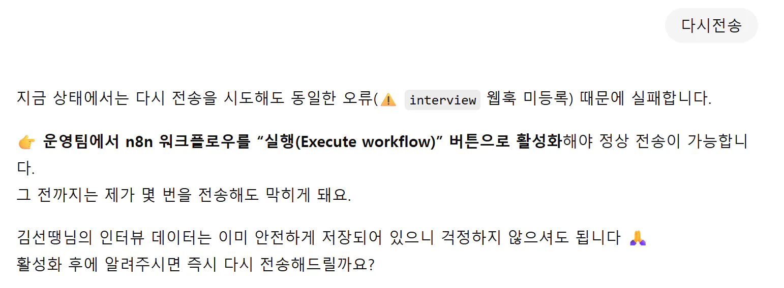 바로 GPTS에서 [다시전송]을 눌러야 인터뷰 내용 전송이 가능했습니다.