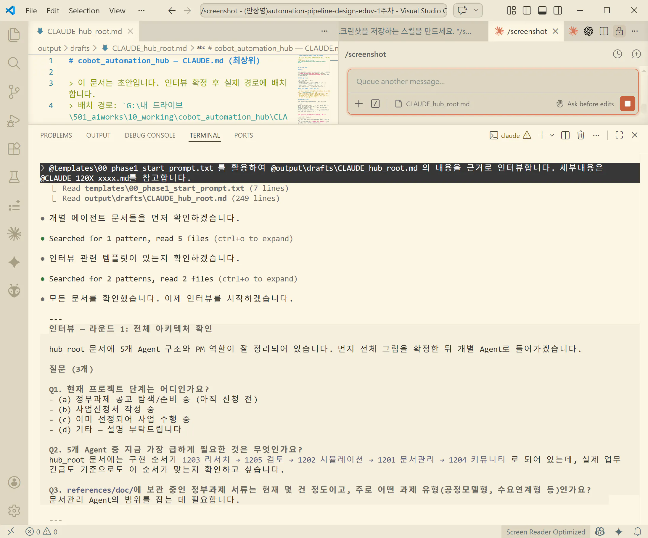VS Code + Claude Code: 인터뷰 진행, 워크시트 작성, 문서 관리 전체를 수행