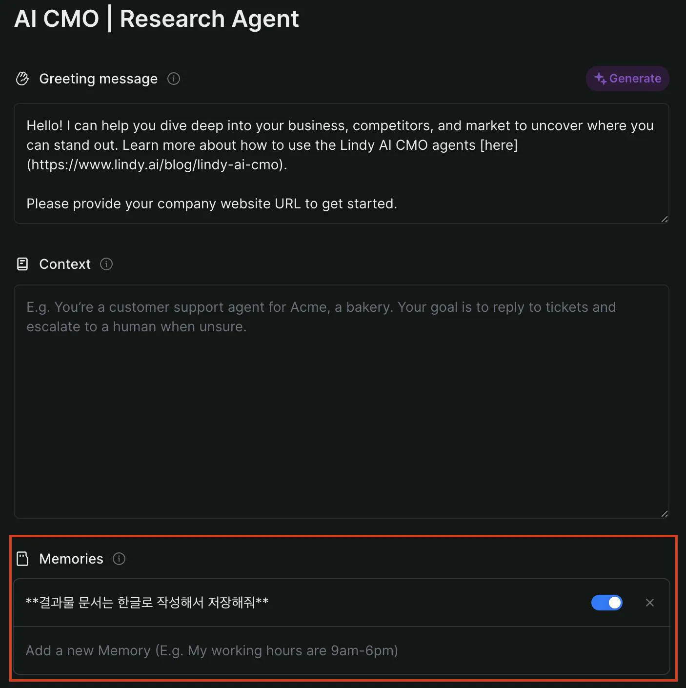 Lindy AI 내 기본 제공 템플릿 [Research Agent]를 활용한 기업 분석 실습