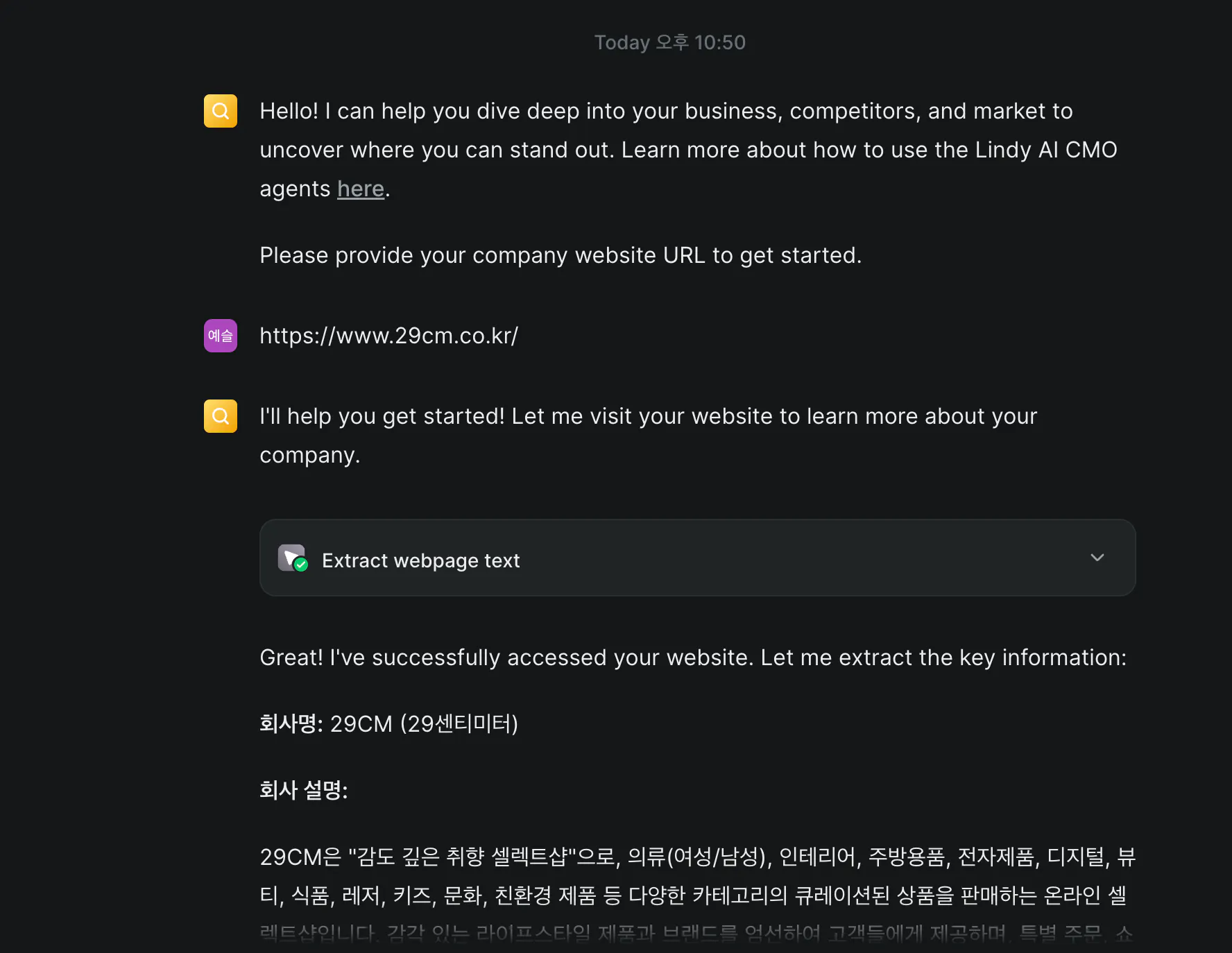 • 사용 도구: AI CMO | Research Agent